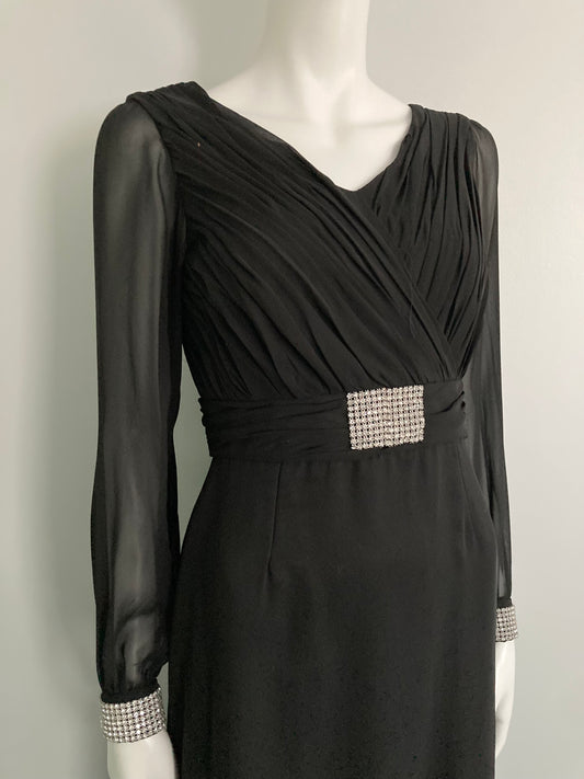 1990s Chiffon Maxi Dress with Rhinestone Cuffs, Size S/M