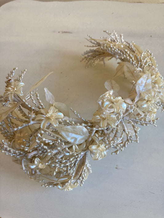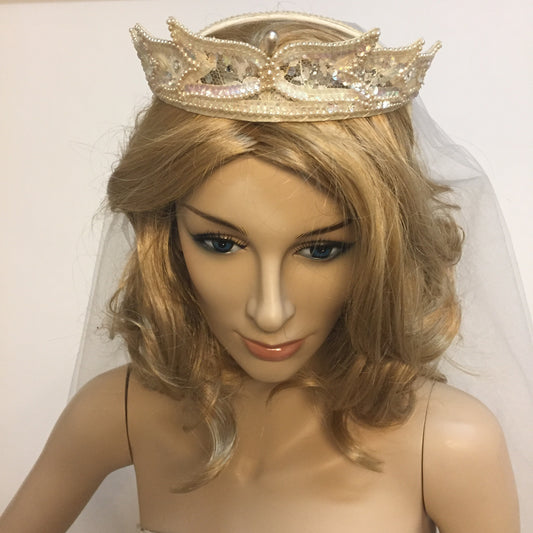 1970s Cotton Pearl Bib Necklace, Vintage Faux Pearl Multi Tier Necklace