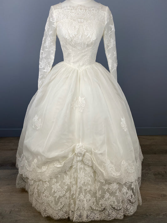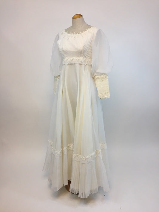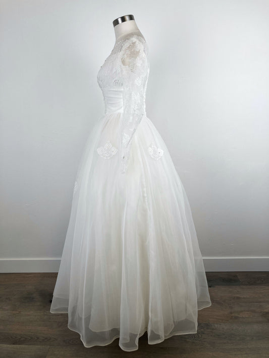 60s Traditional "Bella" Wedding Dress, Romantic Vintage Wedding Dress, Lace and Chiffon Ballgown Wedding Dress, Gown, Size S/M