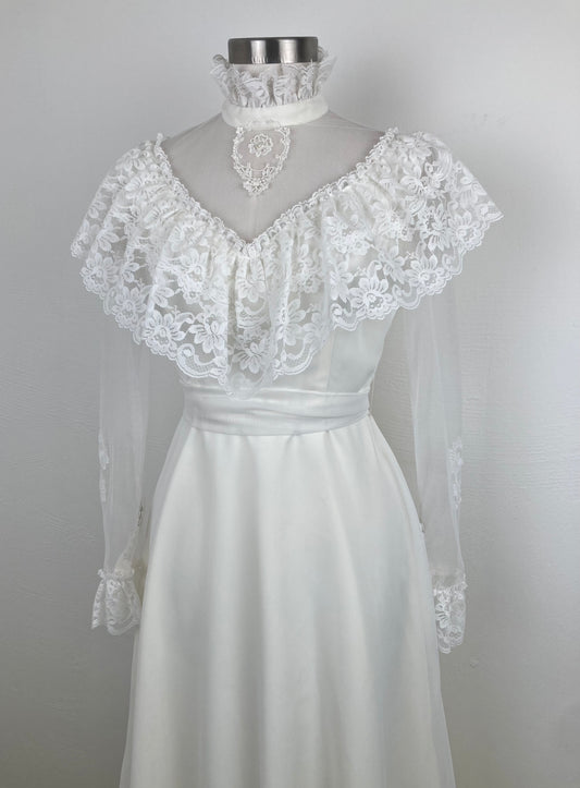 Beautiful 1970s Victorian Inspired Wedding Dress, Size S, "Sharon" vintage wedding dress