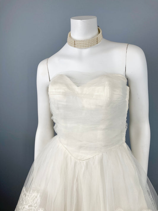 1950s Lace & Tulle Strapless Wedding Dress, Size M, Vintage Strapless Bridal Gown "Valerie"