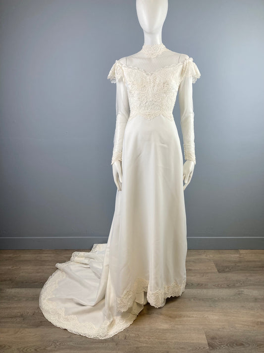 1970s Full Lace High Neck Wedding Dress, Size XS, "Barbara"