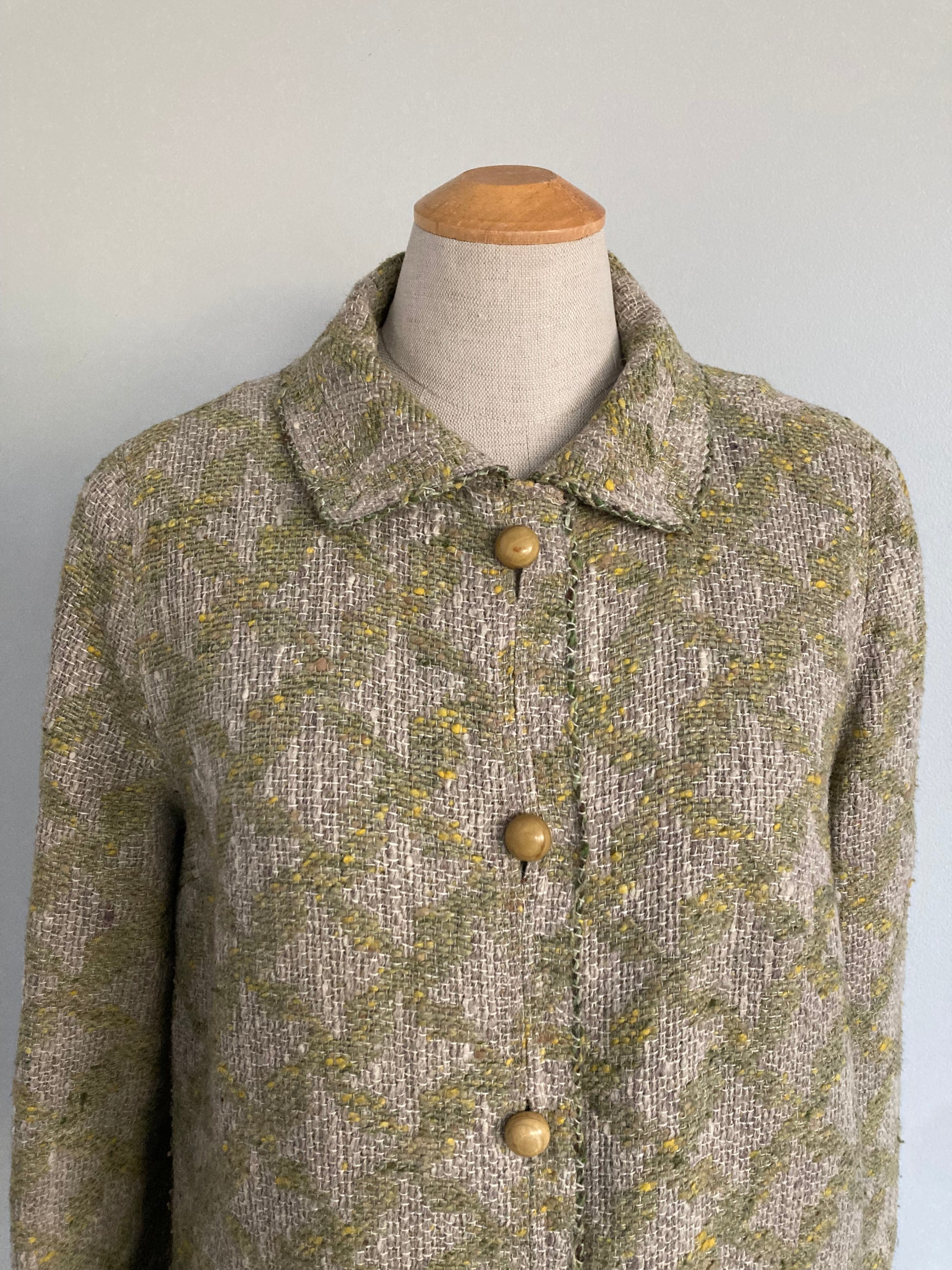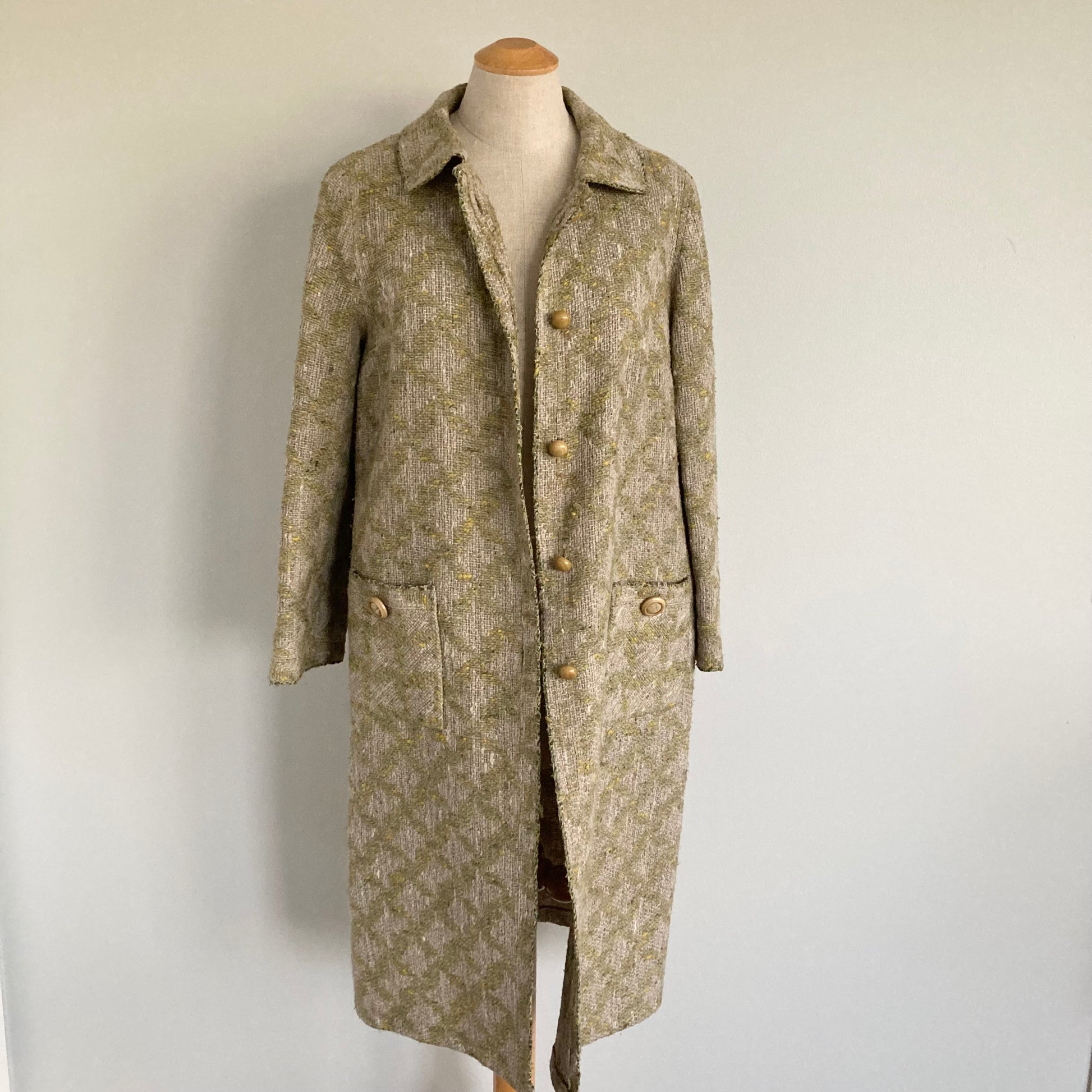 1970s Fenwick Green and Beige Tweed Coat, Size S